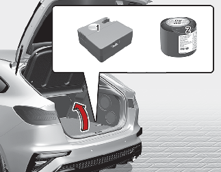 When repairing a flat tire with the Tire Mobility Kit (TMK), quickly remove the sealant on the tire pressure sensor and wheel. When installing the repaired tire and wheel, tighten the wheel nut to a torque value of 11~13 kgf·m (79~94 lbf·ft).