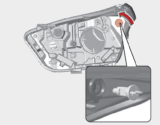 Remove the bulb-socket from the headlamp assembly by turning the bulb-socket counterclockwise until the tabs on the bulb-socket align with the slots on the headlamp assembly.