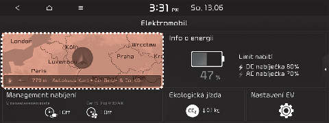 Na obrazovce vyberte volbu „EV → Map“ (Elektromobil → Mapa).