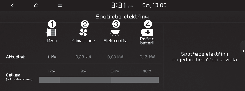 Můžete zkontrolovat momentální spotřebu energie každého systému vozidla.
