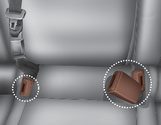 Při sklápění sedadla dozadu zasuňte sponu bezpečnostního pásu zadního sedadla do kapsy mezi zadní opěrák a sedák a poté zkontrolujte, zda oba bezpečnostní pásy nekolidují s uloženými zavazadly a nákladem Poté zasuňte bezpečnostní pás sedadla do dvou vodítek popruhu (nebo držáků) umístěných po stranách.