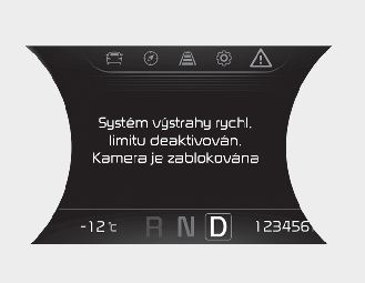 Zpráva se objeví, pokud je zorné pole kamery zakryto nějakými objekty. Funkce se zastaví, dokud není zorné pole opět normální.