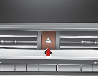 Stiskněte spínač výstražných světel bez ohledu na to, v jaké poloze je tlačítko POWER (Napájení). Spínač výstražných světel se nachází na prostředním ovládacím panelu. Všechny ukazatele změny směru jízdy budou blikat současně.