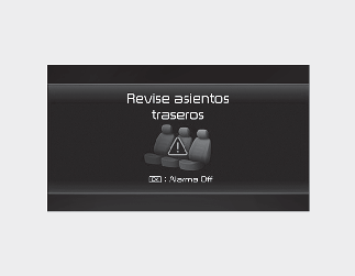 Al abrir la puerta delantera después de abrir y cerrar la puerta trasera y apagar el motor, aparece el mensaje de advertencia "Check rear seats" (Revise asientos traseros) en el tablero.