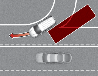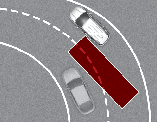 Es posible que la asistencia de prevención de colisión en punto ciego no se accione correctamente al conducir por una carretera con curvas. Es posible que la función no detecte el vehículo que está en el carril contiguo.