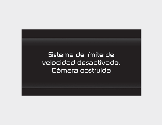Si esto ocurre, el mensaje de advertencia «Speed limit system disabled. Camera obscured" (Aviso de atención frontal desactivado. Cámara obstruida.) aparecerá en el tablero. La función se accionará con normalidad cuando se retire la nieve, lluvia o sustancias extrañas.