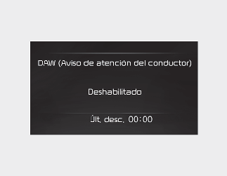 Cuando el conductor restablece el aviso de atención del conductor, el tiempo desde el último descanso se ajusta a 00:00 y el nivel de atención del conductor se ajusta a High (Alto).