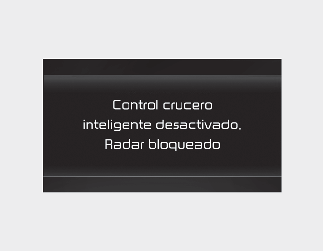Si esto ocurre, aparece el mensaje de advertencia "Control de crucero inteligente deshabilitado. Radar blocked" (Control de crucero inteligente deshabilitado. Radar bloqueado) aparecerá durante un cierto periodo de tiempo en el tablero.