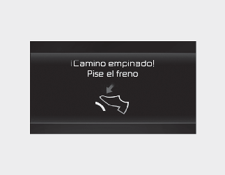 Este mensaje de advertencia se muestra al conducir el vehículo lentamente en una pendiente y el vehículo detecta que el pedal del freno no está accionado.