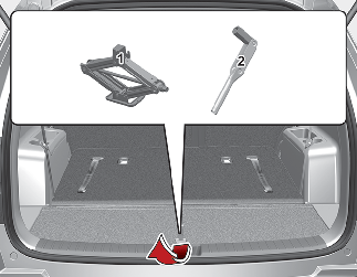 El gato y la llave de las tuercas de las ruedas se encuentran en el maletero.