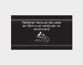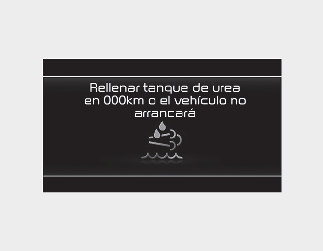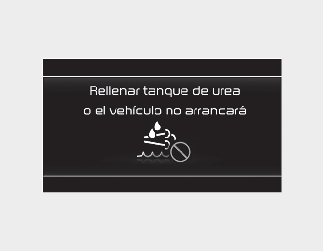 Cuando se muestre el mensaje "Refill Urea tank or vehicle will not start" (llenar depósito de urea o el vehículo no arrancará)