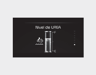 * La imagen del indicador del nivel de urea emerge siempre que el botón ENGINE START/STOP (inicio/parada del motor) esté en la posición ON (activado).