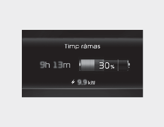 După ce încărcarea a început, timpul estimat de încărcare este afișat pe panoul de instrumente timp de aproximativ 1 minut. De asemenea, este afișat atunci când ușa șoferului este deschisă și încărcarea este în curs. Atunci când este setată încărcarea programată, timpul estimat de încărcare este afișat ca “--".