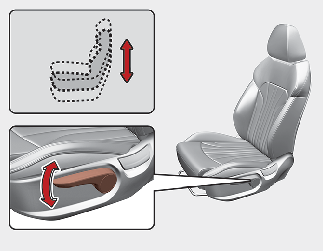 To change the height of the seat cushion, push the lever upwards or downwards.