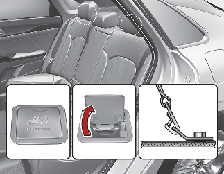 Connect the top-tether to the top-tether anchorage, then tighten the top-tether according to the instructions of your Child Restraint System’s manufacturer to firmly attach the Child Restraint System to the seat.