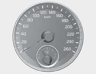 The speedometer indicates the speed of the vehicle and is calibrated in kilometers per hour (km/h) and miles per hour (mph).