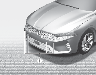 Forward/Reverse Parking Distance Warning will warn the driver by warning indicator or sound if person, animal, or object in certain range is detected from the front/rear ultrasonic sensors (1) when the vehicle is moving forward or backward at low speeds.