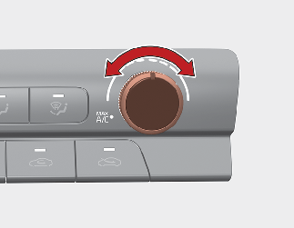 To change the air temperature in the passenger compartment, turn the knob to the right for warm and hot air or to the left for cooler air.