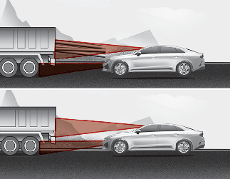 If the vehicle in front of you has cargo that extends rearward from the cab, or when the vehicle in front of you has higher ground clearance, additional special attention is required. Forward Collision-Avoidance Assist may not be able to detect the cargo extending from the vehicle. In these instances, you must maintain a safe braking distance from the rearmost object, and if necessary, steer your vehicle and depress the brake pedal to reduce your driving speed in order to maintain distance.