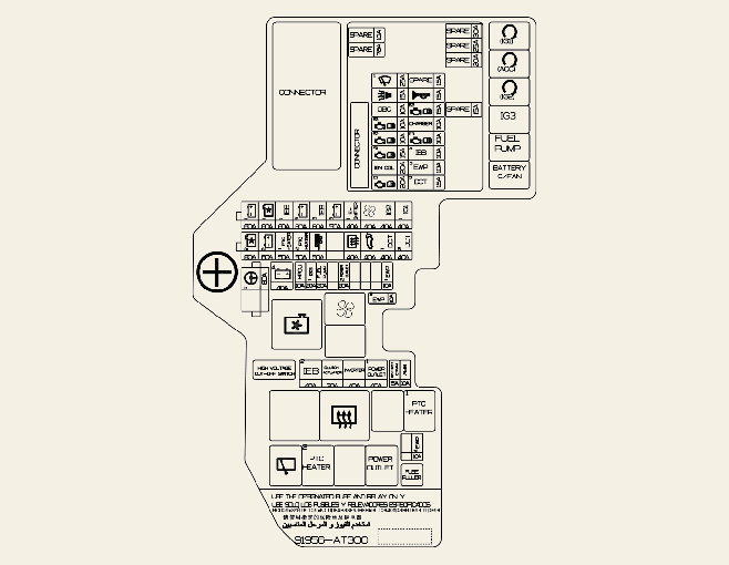 ICU JUNCTION BLOCK (FUSE - MULTIMEDIA, E-CALL, A/BAG2, BRAKE SWITCH, MODULE1, FUEL LID, IBU1, SUNROOF, BATTERY MANAGEMENT, DOOR LOCK |