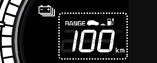 Следует немедленно подключить автомобиль к зарядному устройству, если на дисплее отобразится значение «---». Автомобиль сможет проехать еще 3~8 км (2~5 мили) в зависимости от скорости движения, работы обогревателя/кондиционера, погодных условий, стиля вождения и прочих факторов. До ближайшей заправочной станции автомобиль должен двигаться со скоростью примерно 50 км/ч (30 миль/ч).
