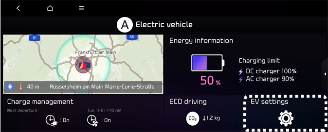 Вы можете применить функции, связанные с электромобилем, для прокладки маршрута. Это позволяет проверить расстояние, которое вы можете проехать с текущим уровнем зарядом батареи. На экране отображаются преодолимые и непроходимые участки пути к пункту назначения. Также отображается значок поиска станций, чтобы можно было сразу найти ближайшие станции для подзарядки.