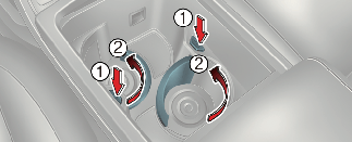 Чтобы воспользоваться подстаканником, нажмите кнопку (1). Появится половина подстаканника (2).