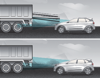 Всегда будьте осторожны с транспортными средствами с большей высотой или транспортными средствами, перевозящими грузы, которые торчат из задней части автомобиля.