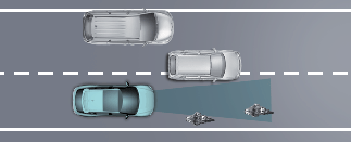 Toliau nurodytais atvejais jutiklis negali aptikti transporto priemonių, judančių prieš jus. Visada stebėkite kelio bei važiavimo sąlygas ir atsargiai vairuokite. Jei reikia, pakoreguokite automobilio greitį.