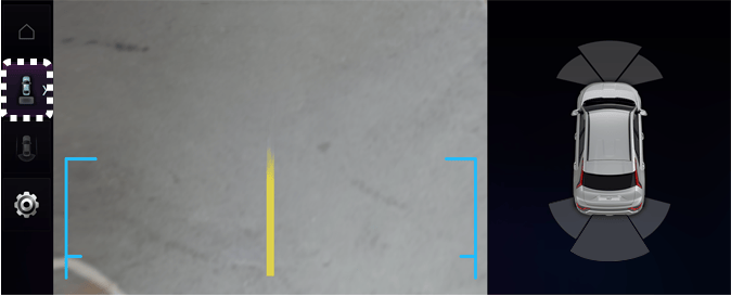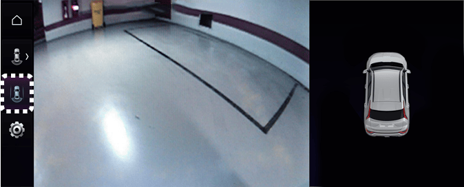 Paspaudžiama vaizdo piktograma, kai ekrane rodomas galinis vaizdas iš viršaus