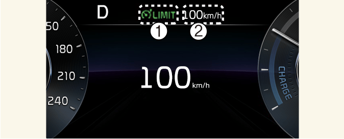 Jei viršijate nustatytą greičio ribą, įsijungia Rankinė ribojamo greičio palaikymo sistema (mirksi nustatytas greitis ir skamba garso signalas) ir veikia tol, kol automobilio greitis sumažėja iki nustatytos ribos.