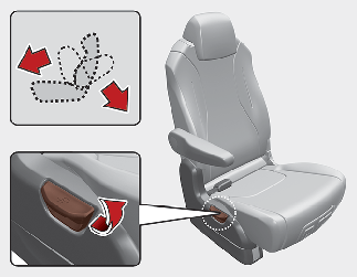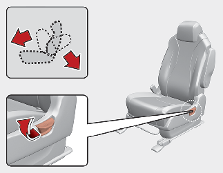 등받이 각도 조절 시 시트에 앉은 상태에서 각도 조절을 할 경우 시트의 등받이가 과도하게 뒤로 넘어갈 수 있으니 시트에 앉기 전 시트 등받이 각도를 조절하십시오.