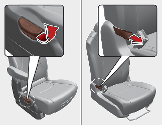 시트에 앉은 상태에서 등을 앞으로 약간 숙이고, 시트 바깥쪽에 위치한 리클라이닝 레버를 위로 당기십시오.