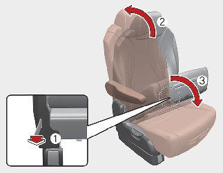 등받이를 앞으로 접으면서 시트를 최대한 앞으로 이동하십시오.