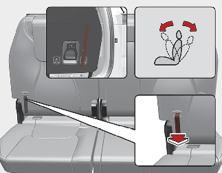 시트 등받이의 조절 끈을 당겨 시트 등받이의 위치를 조정하고 끈을 놓으십시오. 이때 시트 등받이의 상단을 잡고 앞, 뒤로 흔들어 시트 등받이의 고정을 확인하십시오.