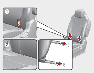 어린이 보조 시트가 확실하게 고정되지 않으면 충돌 사고 시 어린이가 심하게 다치거나 사망할 수 있습니다. 반드시 어린이 보조 시트를 사용, 장착할 때에는 어린이 보조 시트 제작사의 지시에 따르십시오.