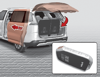스마트키의 도어 잠금 해제 버튼을 약 3초 이상 누르면 설정된 도어(좌·우 슬라이딩 도어/좌·우 슬라이딩 도어 및 테일게이트)가 열립니다.