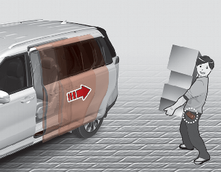 스마트 파워 슬라이딩 도어 감지 영역 내에서 불필요하게 서있을 경우 파워 슬라이딩 도어가 자동으로 열립니다.