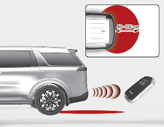 테일게이트 후방 약 50~100 cm 이내에 스마트키가 감지되면 웰컴 경보가 작동하면서 기능이 작동합니다.