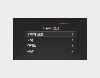 사용자 설정에 표시되는 설정 항목은 차량의 사양 구성에 따라 본 사용설명서와 다르게 나타날 수 있습니다.