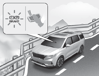 브레이크 경고등이 켜지면 페달이 딱딱해져 제동이 힘들 수 있습니다. 이 경우에는 평상시보다 강하게 밟아 정지해야 합니다.