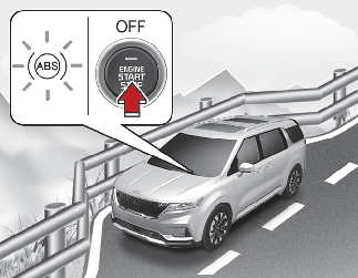 약 3초 후에도 계속 경고등이 켜지면 ABS 장치에 이상이 발생한 것이므로 가까운 자사 직영 서비스센터 또는 서비스협력사에서 점검 및 정비를 받으십시오.
