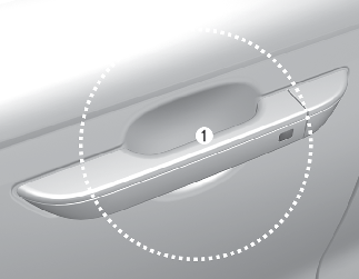 등록된 스마트폰의 NFC 안테나를 운전석 또는 동승석 도어 핸들 인증 패드 중앙에 2초 이상 접촉하면 도어가 잠금 또는 잠금 해제됩니다.