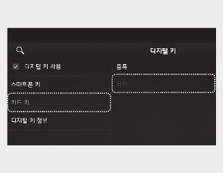 등록되어 있는 디지털 키(카드)가 없다면 '삭제'가 비활성화되어 있습니다.