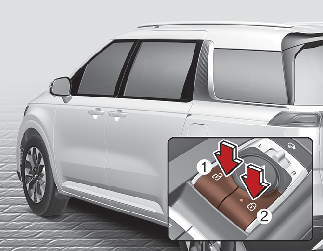 슬라이딩 도어가 완전히 닫히지 않은 상태에서 연료 주입구가 열리면, 슬라이딩 도어가 열릴 수 있어 주유 중 도어와 연료 주입구의 손상이 발생할 수 있습니다.