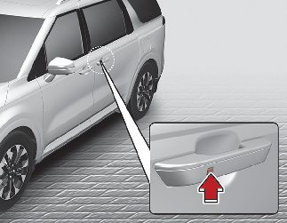 모든 도어(테일게이트 포함)가 닫히고 잠긴 상태에서 바깥 손잡이를 당기거나 도어 손잡이 버튼을 누르면 모든 도어가 잠금 해제되고, 해당 도어가 자동으로 열립니다. (사양 적용 시)