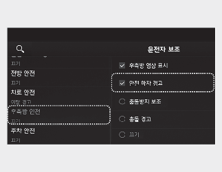 선택을 해제할 경우 기능의 도움을 받을 수 없으니 항상 주의하여 운전하십시오.