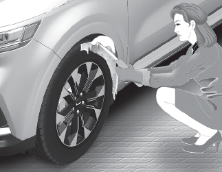 차의 밑부분 둘레에 있는 얼음 덩어리를 부품에 손상을 주지 않도록 주의하면서 제거하십시오.