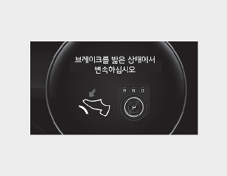 변속할 때 브레이크 페달을 밟지 않으면 표시창에 경고 메시지가 뜹니다.