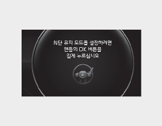 계기판에 "N단 유지 모드를 설정하려면 OK 버튼을 길게 누르십시오" 메시지가 뜨면, 스티어링 휠에 있는 OK 버튼을 길게 누르십시오.